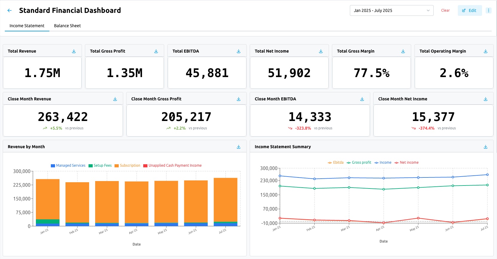 KPI Dashboards: Automated tracking for unit economics and margin insights.